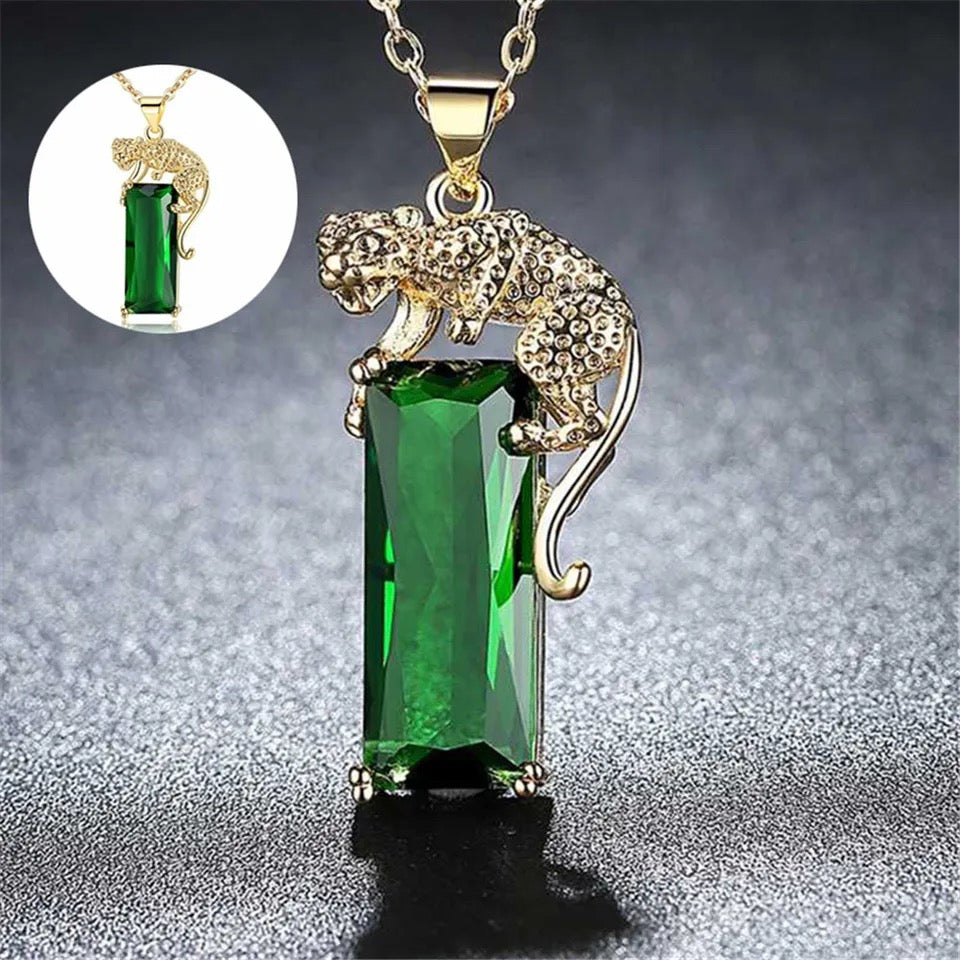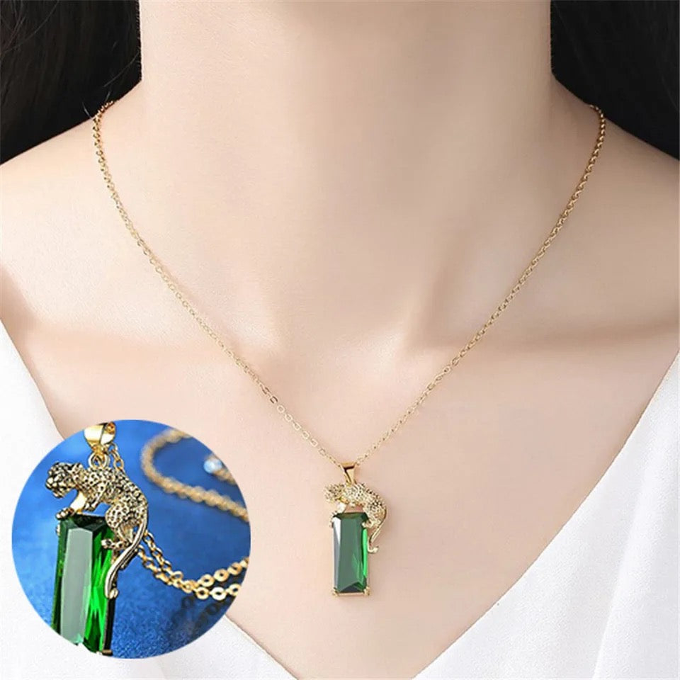 Gold Emerald Exquisite Leopard Necklace